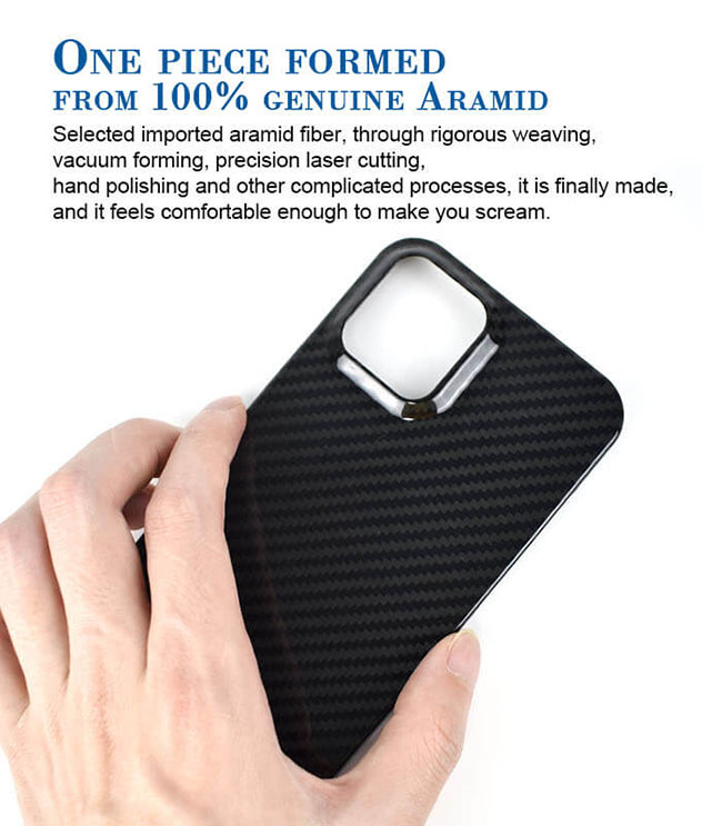 As we want a case to be slim, light and strong, durable, we finally found the Aramid fiber,which is the super hero among materials for its extraordinary weight-to-strength ratio.